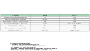 Je vous propose une gamme de soins énergétiques personnalisés pour répondre à vos besoins spécifiques. Mon approche est douce et intuitive, visant à rétablir l'harmonie et à soulager vos maux.